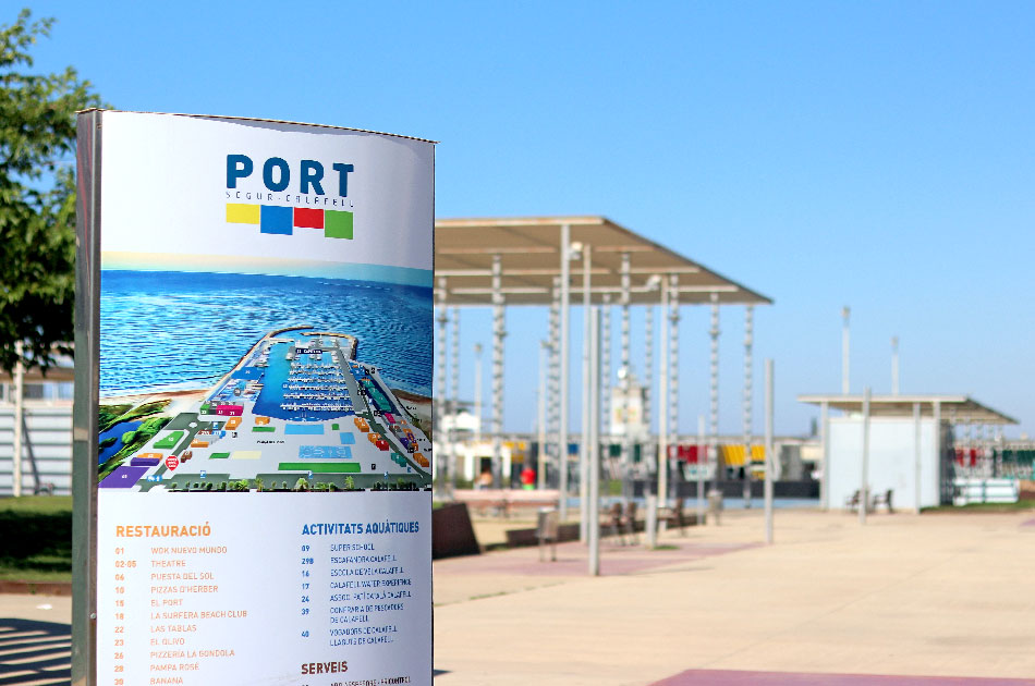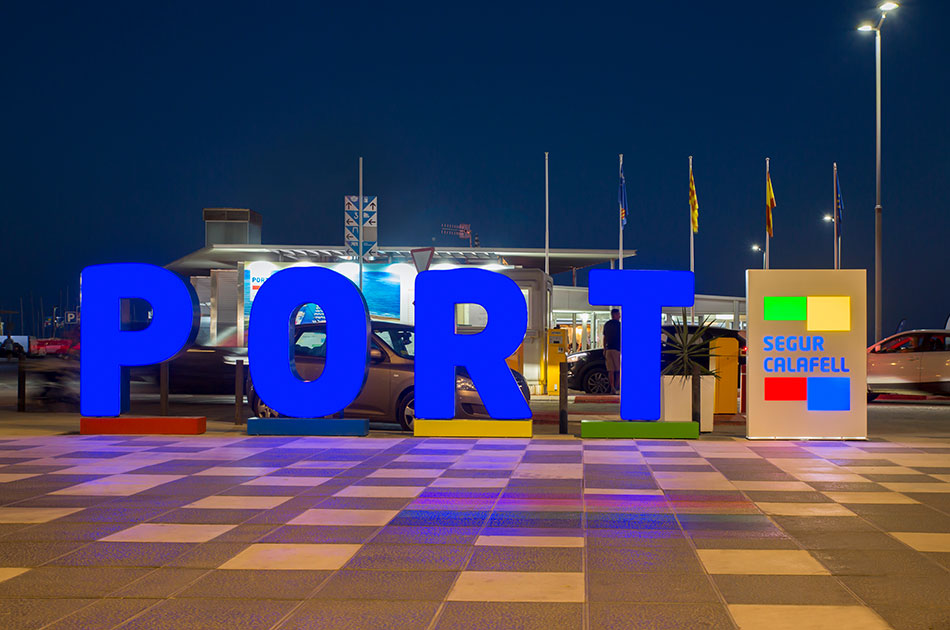 Port Segur-Calafell se reestrenó con todas las letras, luciendo su nombre mediante un conjunto de piezas corpóreas luminosas gigantes en tres dimensiones, fundamentales para el reconocimiento de marca y seña de identidad del puerto deportivo, funcionando además como un símbolo de bienvenida, lo que supone un nuevo recurso a nivel publicitario y turístico para atraer y captar la atención de los visitantes e invitarles a que disfruten de todos los servicios turísticos que brinda el puerto deportivo.